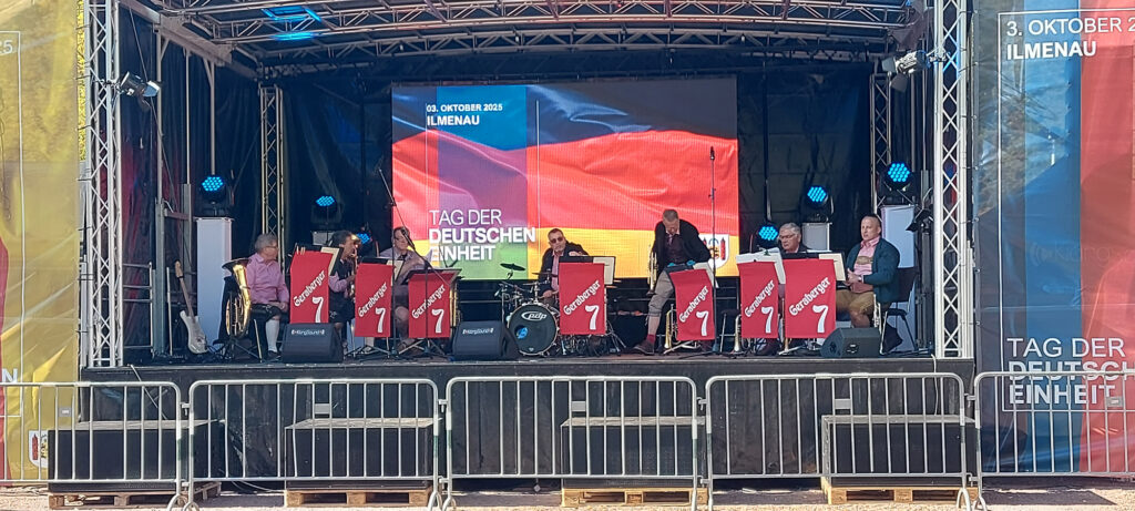 Aber dieser ganz andere Charakter veranlasste mich, überhaupt über unsere Erlebnis in Ilmenau zu schreiben. Wir waren zum zweiten Male dort, das Datum war dem Zufall geschuldet, denn diese wunderschöne Ferienwohnung war ein paar Tage frei. Den ganzen Tag über zwischen 9.30 und 18.00 Uhr flanierten Leute aller Altersstufen zum 700m entfernten Park an unserem Quartier vorbei. Anschließend waren es die Besucher des Jubiläumskonzertes „Die Prinzen“, das in der danebenliegenden Festhalle stattfand. Und das Wetter spielte prächtig mit (anders als bei unserer Heimreise am nächsten Tag).