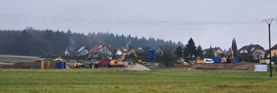 Es wird gebaggert und geschoben im neuen Baugebiet Dreispitz III in Fellingshausen. Die notwendige Infrastruktur für die zukünftige Bebauung wird dabei in den Boden gebracht. So läuft nun auch wirklich Wasser in das Regenrückhaltebecken, das bislang eher von einem Rinnsal geflutet wurde. Zugleich wachsen um das Regenrückhaltebecken die befestigten Wege und Zäune, so dass der …