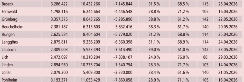 Gedenktage richtet man oft ein, wenn etwas nicht mehr existiert. So weit sind wir zum Glück noch nicht. Aber schaut man sich die unter Infrastruktur abgebildete Tabelle genau an, dann könnte man meinen „Viel fehlt dazu nicht mehr!“ Das Datum 20. Mai gilt nämlich nur für Biebertal. 14 der 17 Kreisgemeinden „feiern“ diesen Tag früher. …