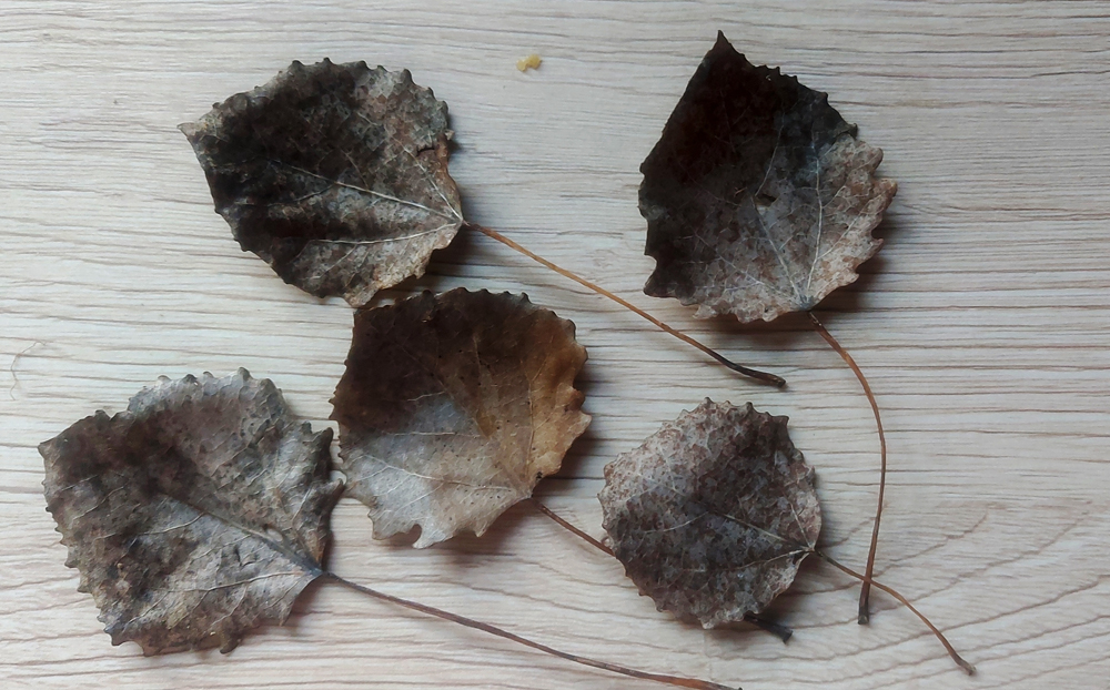 Das Foto zeigt fast kreisrunde Blätter auf einem relativ langen Stiel. Die Besonderheit liegt außerdem im Querschnitt des Stieles. Er sieht aus wie ein Propellerblatt. Alles zusammen ergibt, dass die Espenblätter sich beim kleinsten Windhauch bewegen. Besonders hübsch wirkt das, wenn die Blätter im Herbst ihre leuchtende Gelbfärbung zeigen. Ein Flirren „wie im sonnigen Süden“.