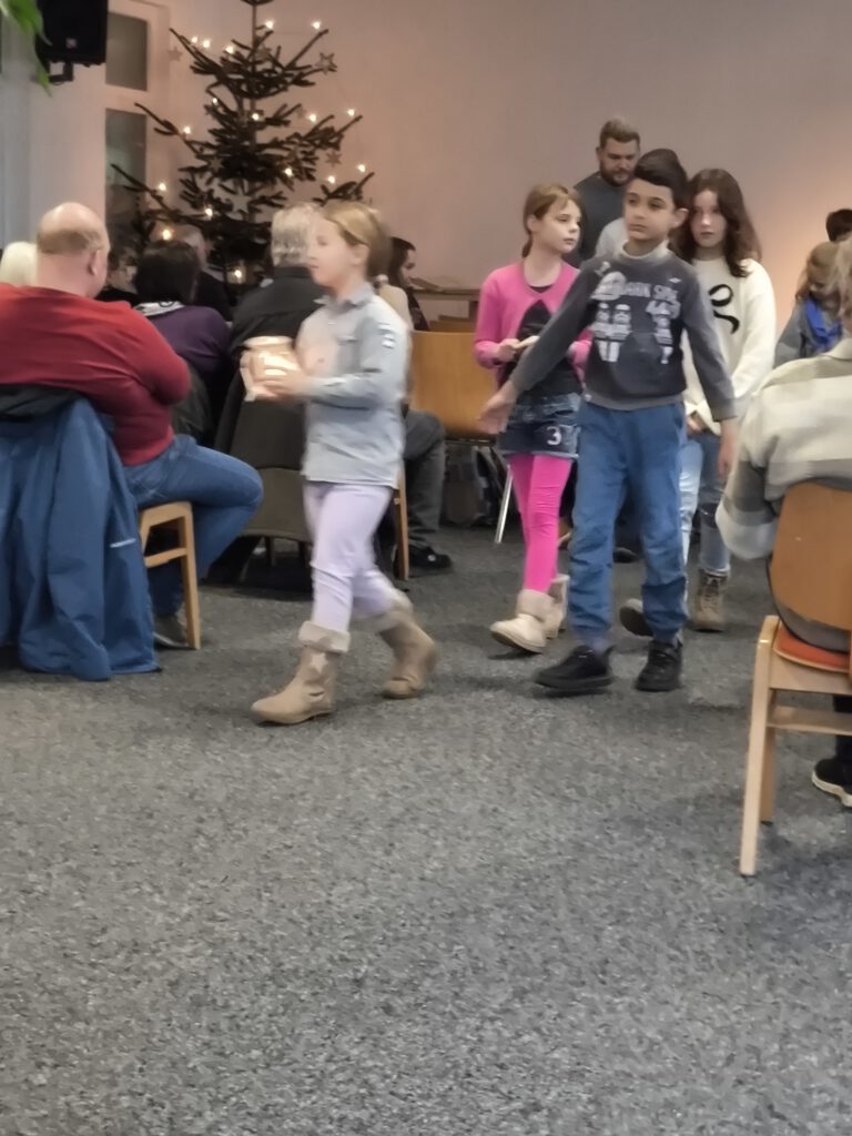 Nachdem die Kinder mit dem Licht des Friedens in den Kindergottesdienst verabschiedet wurden, wurde gemeinsam das Lied „O komm, O komm du Morgenstern“ gesungen.
