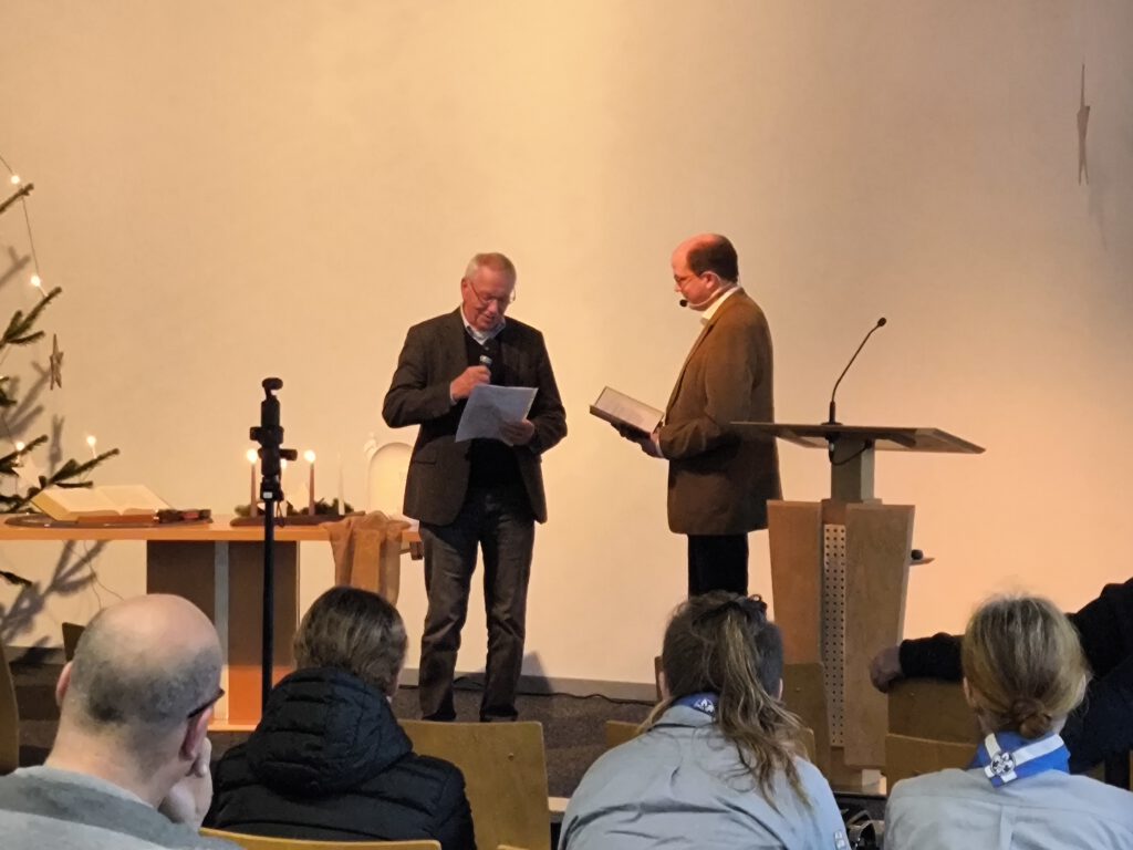 Danach erklärte Pfarrer Schäfer i. R., der auch bei den Modellbahnfreunden aktiv ist, wie er zu den kleinen Zügen gekommen ist. Als er jung war, war der Fuhr mit seinen Modellbahnen das Non plus ultra für Jungs und einer der Herzenswünsche zu Weihnachten. Er bekam auch eine, aber am Ende spielten sein Vater und sein Onkel damit, da er angeblich noch zu jung war. Diese Leidenschaft für die kleinen Bahnen hat bis heute angehalten.