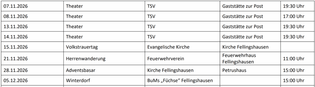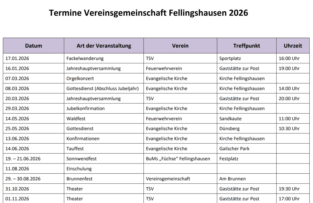 Fellingshäuser Vereine stimmten Termine für 2026 ab:von Dr. Alfons Lindemannin Feste, Veranstaltung, Musik, Infrastruktur, Veranstaltungen Fellingshausen, Sehenswert und Tourismus, Fellingshausenan Veröffentlicht am 19. November 202515. November 2025