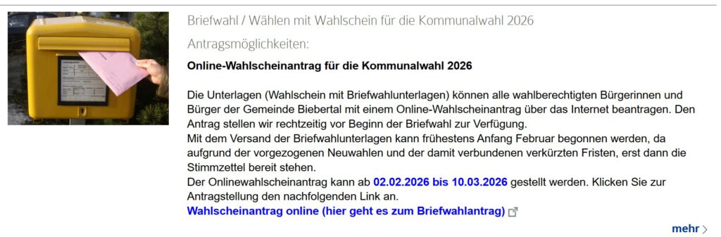Screenshot von der Veröffentlichung auf der Seite der Gemeinde Biebertal