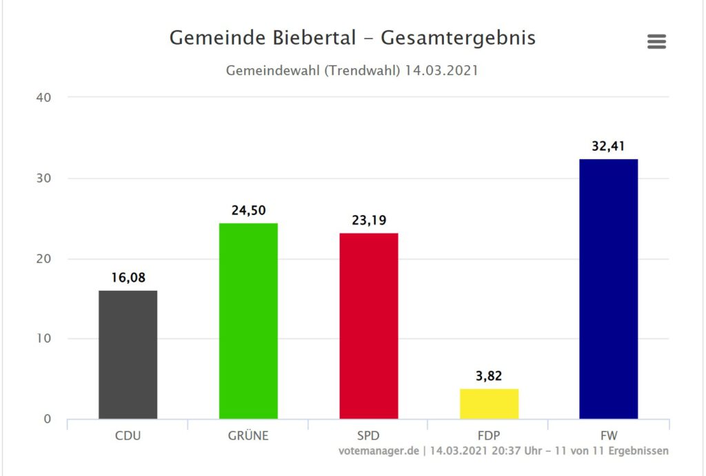 Auch das Biebertaler Parlament wird neu gewählt. Bisher haben wir 31 Gemeindevertreter/innen. Laut einem Parlamentsbeschluss vom März 2025 können 2026 nur noch 27 Personen gewählt werden. Begründet wurde die Verkleinerung mit dem schwindenden Interesse an den Geschehnissen in der Gemeinde.
