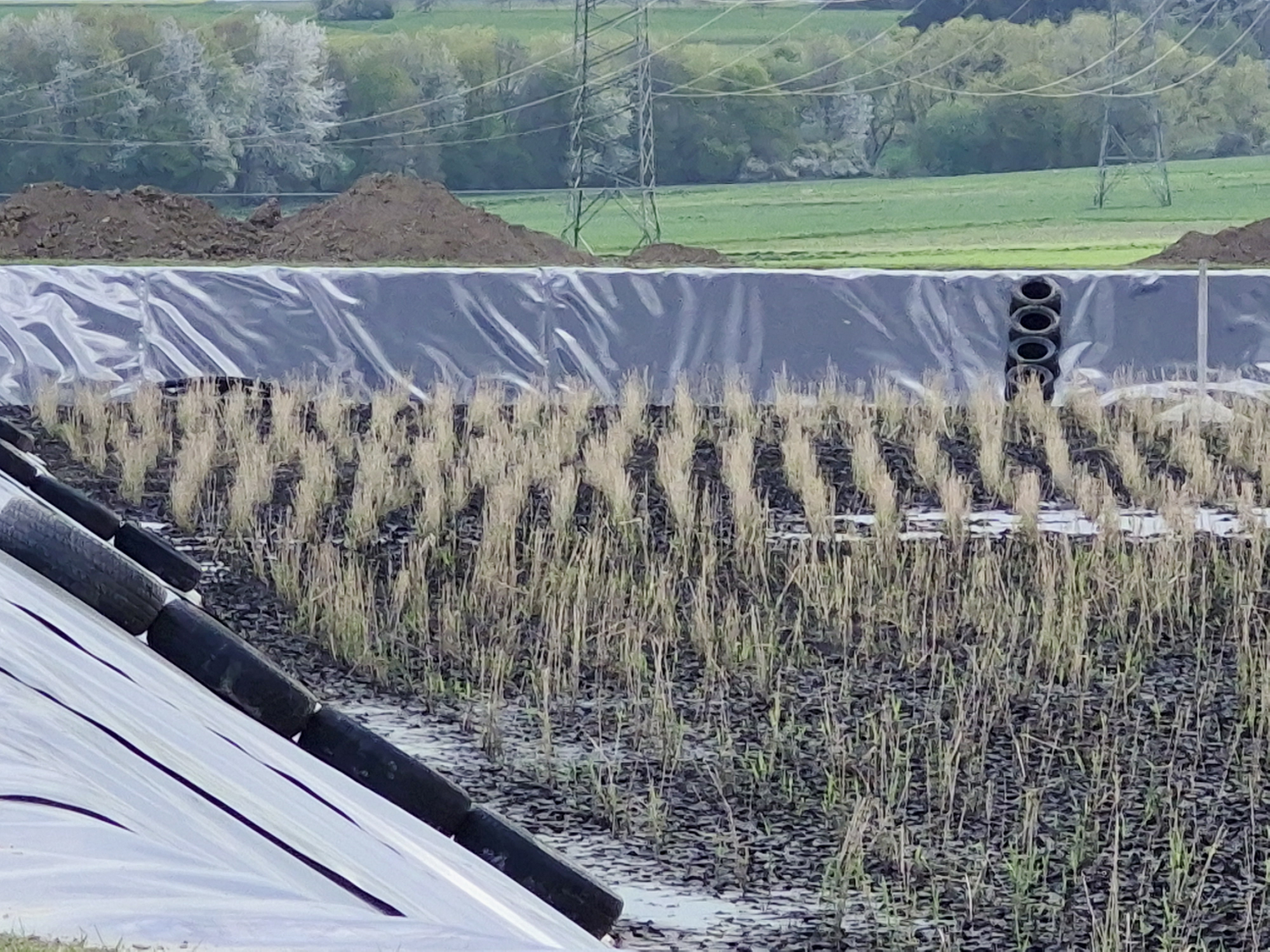 Am 5. August 2025 berichteten wir hier über den „Ersten Spatenstich“ an der Klärschlamm-Vererdungsanlage. Acht Monate später ist diese Baustelle fast abgesschlossen, und das, obwohl eine Winterpause eingelegt werden musste. Die Bauarbeiten – für Biebertal ungewöhnlich schnell – waren offenbar bei der Pauly-Group in guten Händen. Die Schilfpflanzen durften ja erst im Frühjahr gesetzt werden. Wir konnten nur zwei Becken einsehen, nehmen aber an, dass auch im dritten Becken schon Pflanzen stehen. Das Video zeigt einen (Probe?)Einlauf des Klärschlamms, der von der Kläranlage nach oben gepumpt wird.