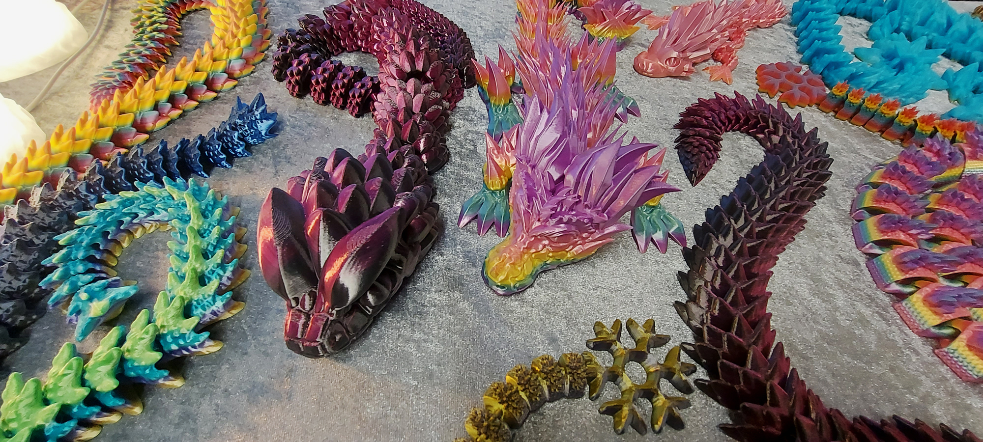 Sascha König aus Fellingshausen stellte auch im vergangenen Jahr schon seine Schlangen- und Drachenfiguren aus. Es ist überwiegend Spielzeug in leuchtenden Farben.