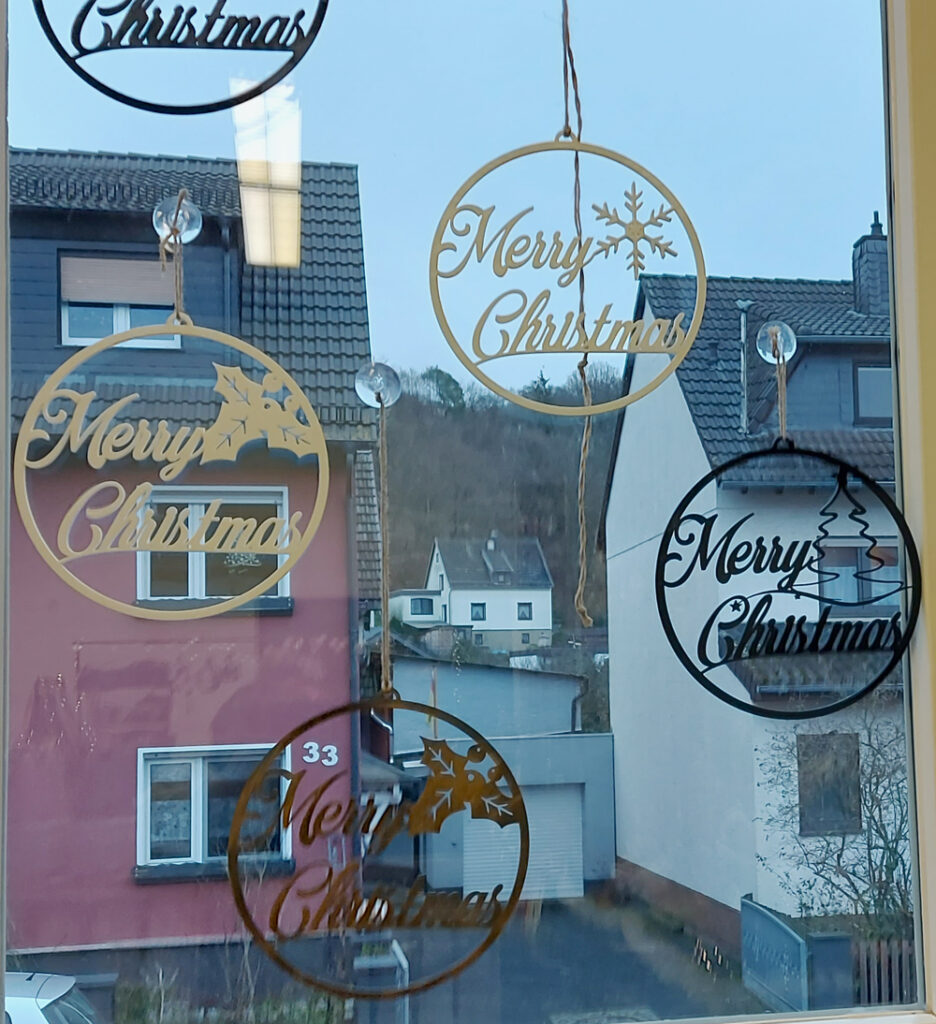Bekannt ist Markus Whisker, der hier ganz neu kleine Tannenbäumchen aus Mammutbaumzapfen und weihnachtliche Fensterbilder anbot.