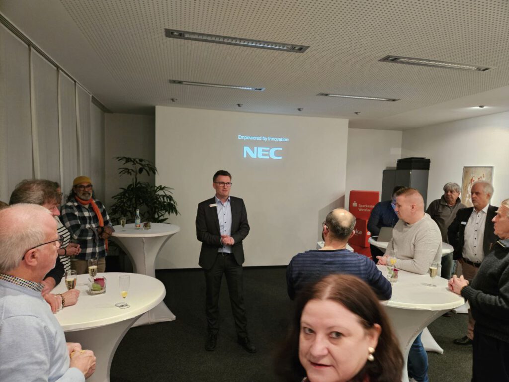 Zum Abschluss noch ein kleines Highlight am Rande: mit zwei Jahren Verspätung lud die Bürgermeisterin hier für das kommende Jahr in die Neue Feuerwehrstation Biebertal Mitte ein, wo der nächste Neujahrsempfang des Gewerbevereins stattfinden soll. Selbstverständlich hatte auch sie in einer kleinen Begrüßungsrede freundlich-freudige Grußworte für Ihre gewerblichen Steuerzahler; wobei sie betonte, wie gut es sei, Banken vor Ort zu haben, wo man noch von Mensch zu Mensch miteinander reden könne.