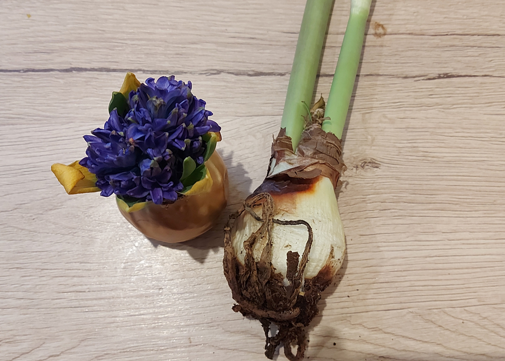Die Amaryllis und die Hyazinthe bekam ich geschenkt. Beide Blumen mag ich. Aber wenn man genau hinguckt, erkennt man, dass die Hyazinthe bereits braune Blätter hat (6 Tage, nachdem ich sie erhielt) und dass der Amaryllis die Wurzeln fehlen. Sie steht also nicht fest in der Erde und kann sich auch nicht weiter entwickeln. Zwiebeln einfach in gefärbtes Wachs einzutauchen, halte ich für Körperverletzung. Pflanzen sind Lebewesen. Es ist ähnlich wie in dem James Bond Film „Goldfinger“: Es Kommt keine Luft an die Zwiebeln, wodurch sie zum Tode verurteilt sind. Es nutzt auch nicht mehr, sie aus dem Wachs zu schälen. Meine richtig gepflegten Hyazinthen pflanze ich dagegen im Frühling in den Garten. Und da gedeihen sie nun schon zwei Jahrzehnte.