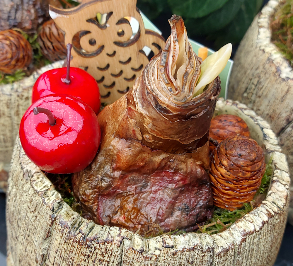 Das Foto rechts wurde im Außengelände eines Supermarktes aufgenommen. Die Töpfe mit den Zwiebeln standen bereits seit vielen Tagen draußen. Und das bei einer Pflanze, die aus südafrikanischen Steppen kommt. Die Zwiebel ist komplett verfault. Was meint die KI dazu?