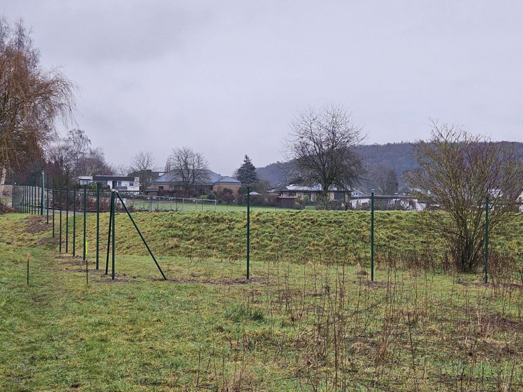 Zugleich wachsen um das Regenrückhaltebecken die befestigten Wege und Zäune, so dass der Spaziergang dort bald vermutlich am Zaun enden wird.